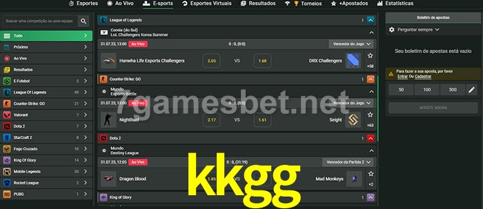 O kkgg oferece uma grande seleção de opções de apostas em e-sports com probabilidades competitivas